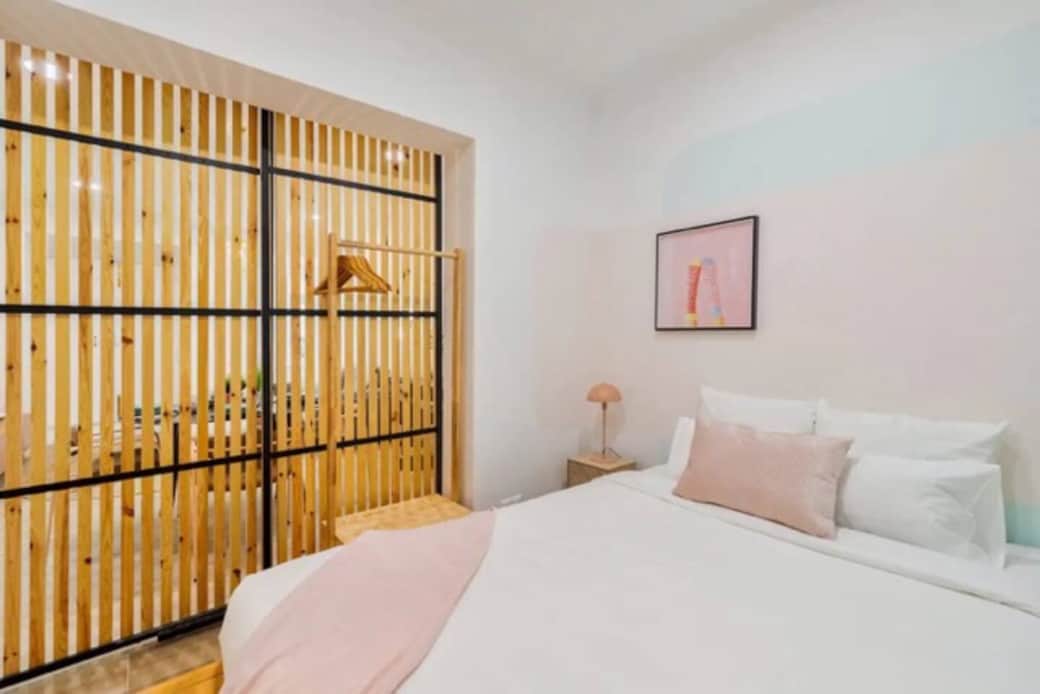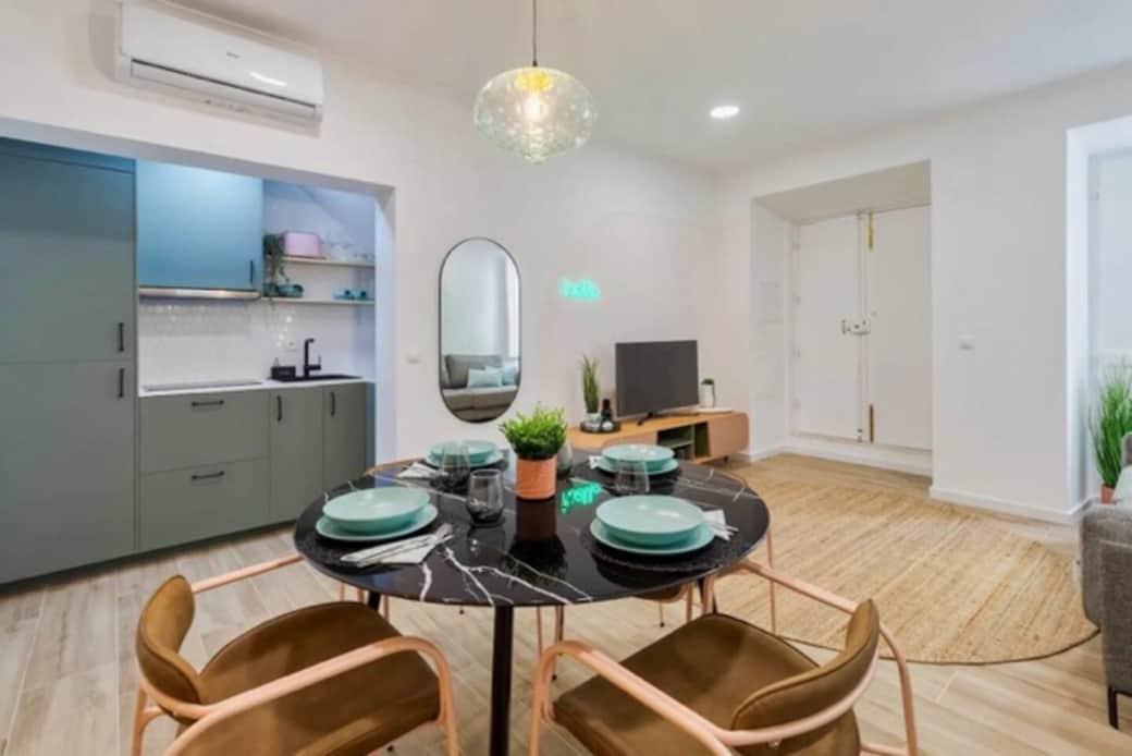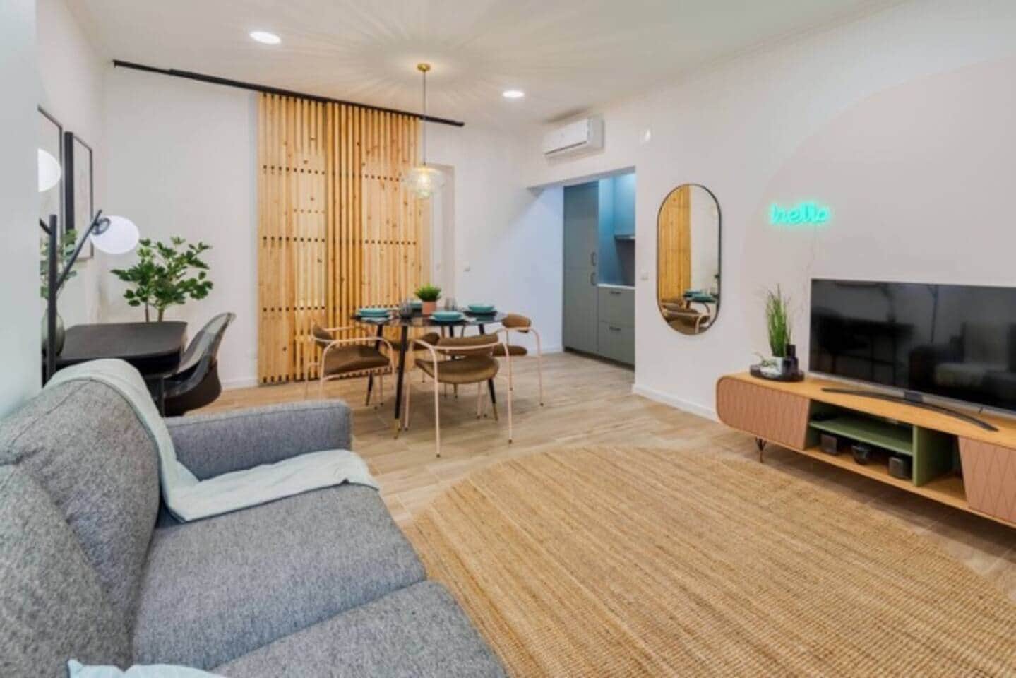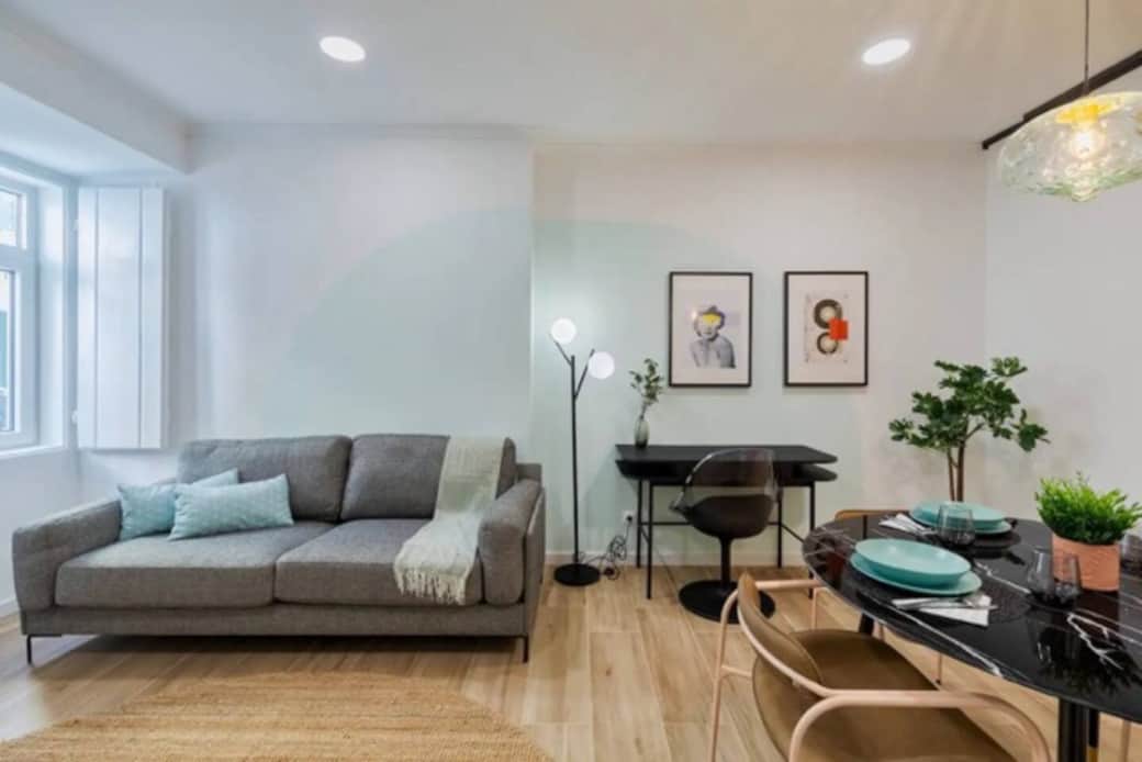 Stylish open space studio in Setúbal, combining living area, kitchen, and bedroom in a bright, modern layout. The sleeping area is separated by a wooden partition, offering privacy without losing space. Cozy design, fully equipped kitchen, fast WiFi, and well located near the center, restaurants, and transport, plus easy access to the stunning Serra da Arrábida. Ideal for couples or solo stays.