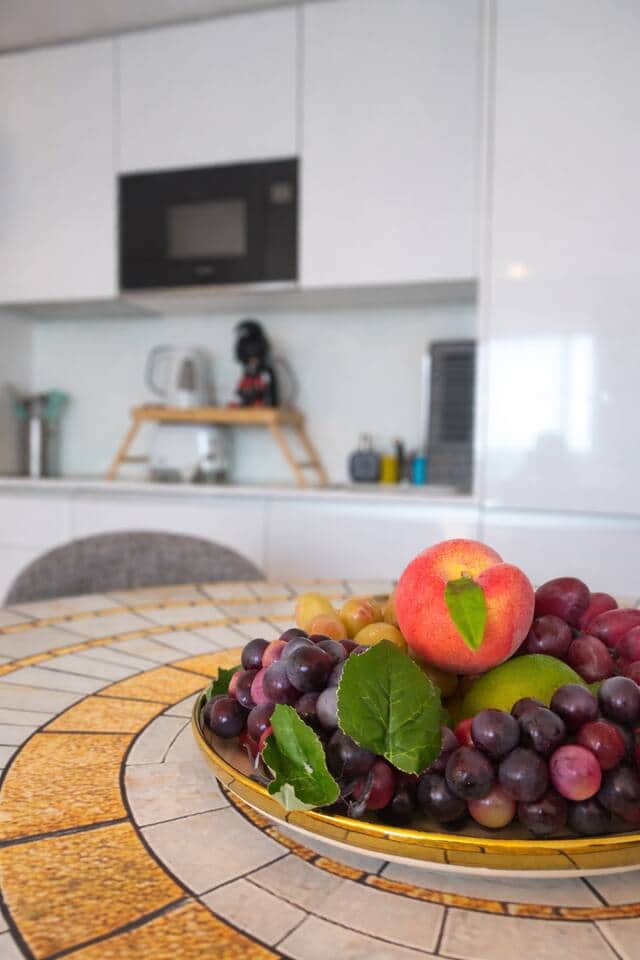 Located on the 8th floor with lift access, it features a bright living area with sofa bed, balcony, and sea views, a fully equipped kitchen, a queen bedroom, and a bathroom with essentials.